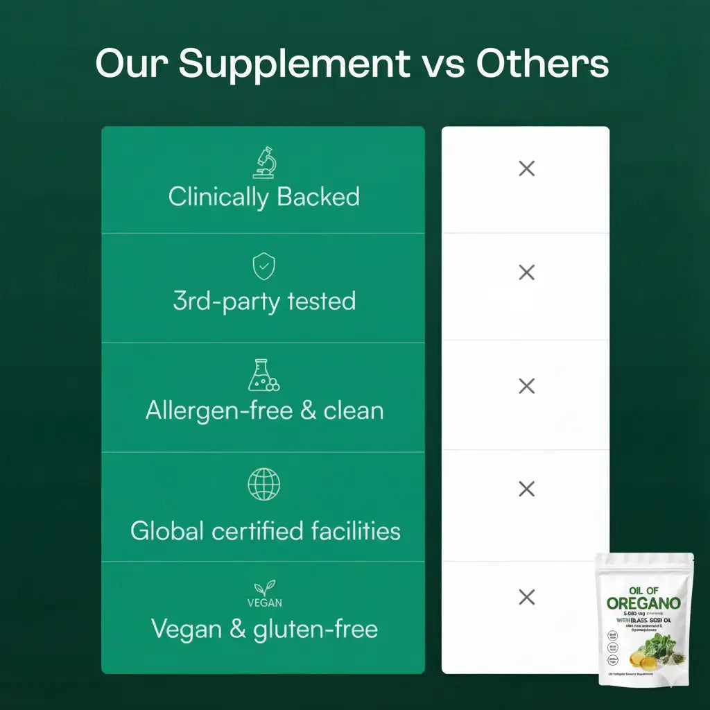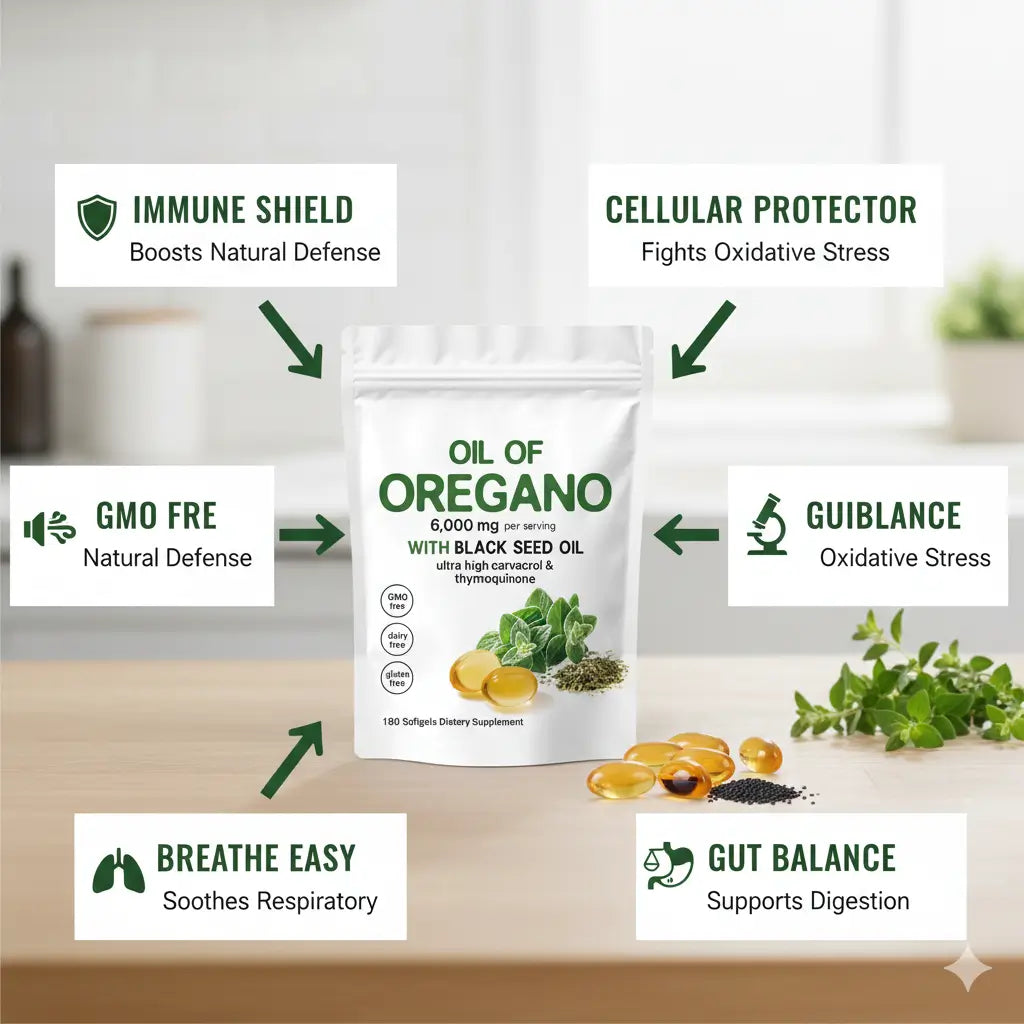 No underdosed ingredients or trendy blends. Just powerful amounts of oregano oil (6,000 mg) and black seed oil (200 mg)—proven to work.